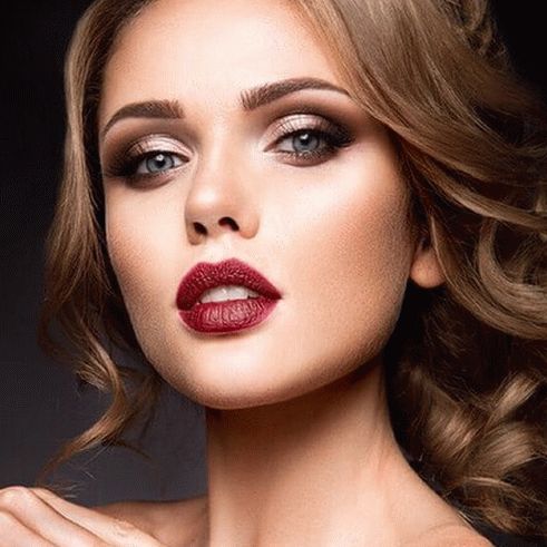 Verwenden Sie, um die Unwiderstehlichkeit Ihrer Lippen zu betonen leuchtend rote Töne, saftige Kirsche oder Rosa. Nur in diesem Konzentrieren Sie sich auf keinen Fall auf die Augen, um nicht wie eine Puppe auszusehen. Wenn Sie müssen Ihre Augen ausdrücken, besser Pastell Lippenstift wählen Schatten oder Brillanz.