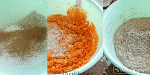 mischen Sie es auf Fügen Sie Honig, Apfelmus, Karotten und Kleie hinzu,