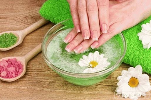 Hände für fünfzehn Minuten. Nach dieser Prozedur die Haut