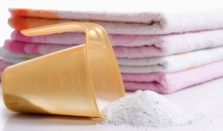- Salz (vorzugsweise Meersalz). Vor dem Waschen legen Sie es in einen speziellen Behälter der Pudermaschine zusammen mit hochwertiges Waschmittel. Wählen Sie nur den empfindlichen Modus. Vor dem Waschen über Nacht ein Handtuch in einer Lösung von 5 Litern einweichen Wasser und 10 Esslöffel Soda. Danach gründlich ausspülen und an senden Waschmaschine Trommel.